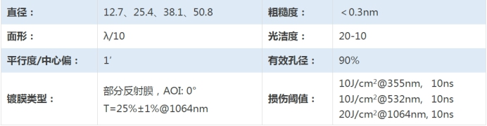 采用先進鍍膜技術(shù):透過率> 99.8 %@1064nm ;反射率> 99.8%@1064nm